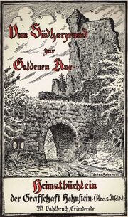 | 10:56, 6. Jan. 2020 | Heimatbüchlein Teichmüller Nordhausen.jpg (Datei) | 622 KB | Vincent Eisfeld (Diskussion | Beiträge) | {{Information_Alt_Datei_Hochladen |Beschreibung = Umschlagbild "Vom Südharz zur Goldenen Aue" |Quelle = ''Heimatbüchlein der Grafschaft Hohnstein im Kreise Ilfeld (Südharz)'' |Urheber = Fritz Teichmüller |Datum… | 1 | |