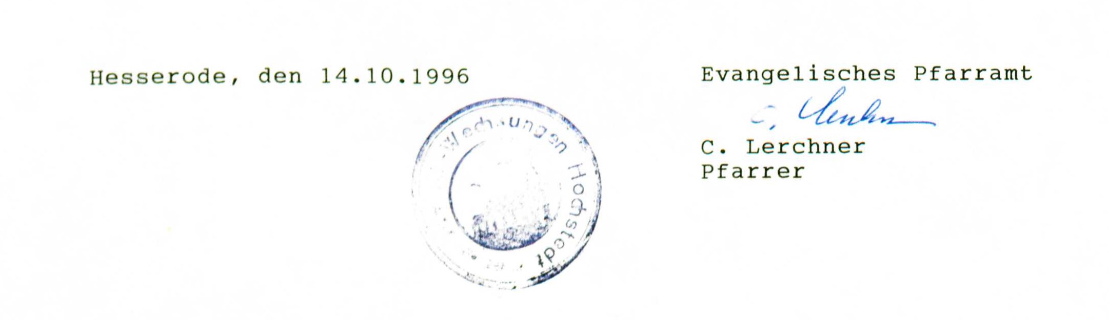 Unterschrift von Christoph Lerchner auf der Beurteilung des Benutzers:Lutz Jödicke vom 14. Oktober 1996 |