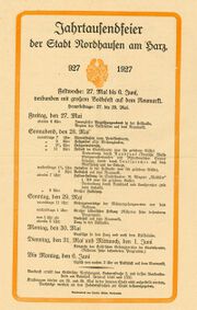 | 13:09, 9. Okt. 2019 | Jahrtausendfeier Nordhausen Programm.jpg (Datei) | 1,4 MB | Vincent Eisfeld (Diskussion | Beiträge) | {{Information_Alt_Datei_Hochladen |Beschreibung = Programm zur "Jahrtausendfeier der Stadt Nordhausen am Harz" |Quelle = Scan |Urheber = Städtische Verkehrsamt |Datum = 1927 |Genehmigung = |Andere Versionen = |… | 1 | |