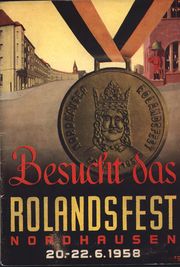 | 12:23, 6. Mär. 2022 | Rolandsfest 1958.jpg (Datei) | 6,98 MB | Vincent Eisfeld (Diskussion | Beiträge) | {{Information_Alt_Datei_Hochladen |Beschreibung = Cover der Broschüre "Festschrift zum IV. Nordhäuser Rolandsfest vom 20. bis 22. Juni 1958" |Quelle = Scan |Urheber = Rat der Stadt Nordhausen; Titelbild: Erhard Heckel |Datum = 1958 |Genehmigung = |Andere Versionen = |Anmerkungen = }} Kategorie:Datei:Rolandsfest | 1 | |