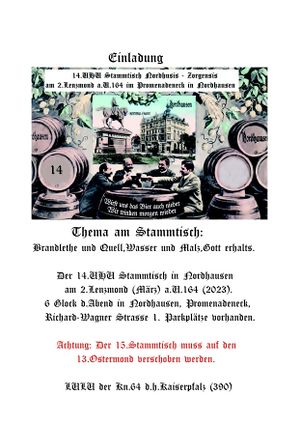 - UHU-Stammtisch am 2. Lenzmond (März), 6. Glock d. A. (18 Uhr), im Promenadeneck