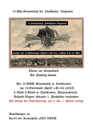 • UHU-Stammtisch am 13. Ostermond (April), 6. Glock d. A. (18 Uhr), im Promenadeneck