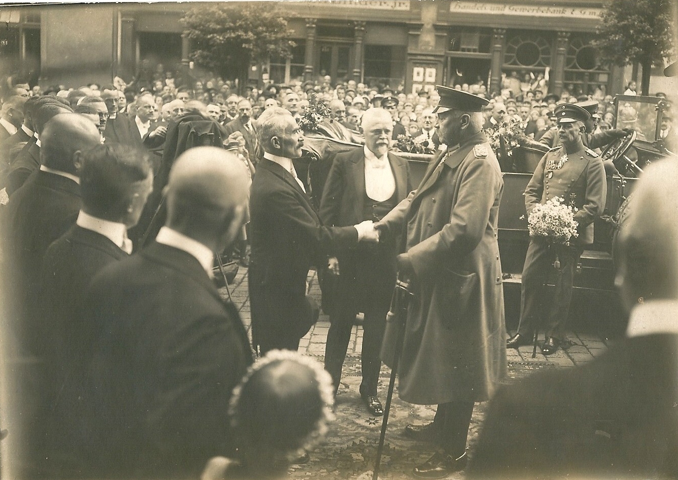 Reichspräsident von Hindenburg beim Empfang in Nordhausen, links vom ihm der Oberbürgermeister Carl Contag |