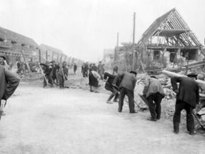 Nordhäuser Bürger bei Aufräumungsarbeiten auf dem Gelände der Boelcke-Kaserne
