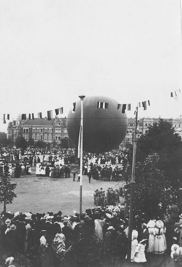 Taufe und Start des Ballons »Nordhausen« am 4. Juli 1909 auf dem Neumarkt |