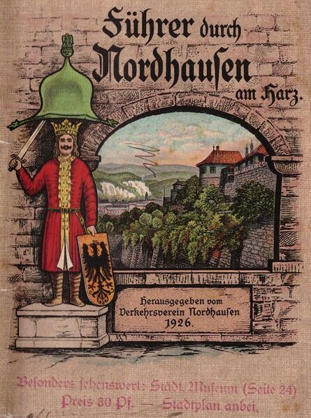 | aktuell | 10:50, 21. Feb. 2020 | 532 × 716 (226 KB) | Vincent Eisfeld (Diskussion | Beiträge) | {{Information_Alt_Datei_Hochladen |Beschreibung = Titelbild Führer durch Nordhausen, die 1000jährige Stadt am Harz |Quelle = Scan |Urheber = Verkehsverein Nordhausen |Datum = 1926 |Genehmigung = |Andere Versionen = |Anmerkungen = }} |