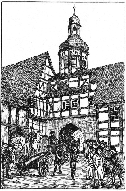 Bild 19: Rittmeister von Koracz führt die Geschütze der Stadt Nordhausen durch das Sundhäuser Tor fort