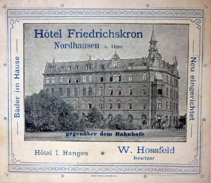 Hotel Friedrichskron in Nordhausen, Besitzer: W. Hossfeld |
