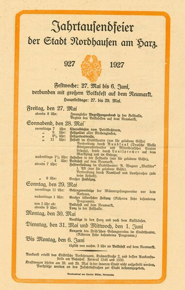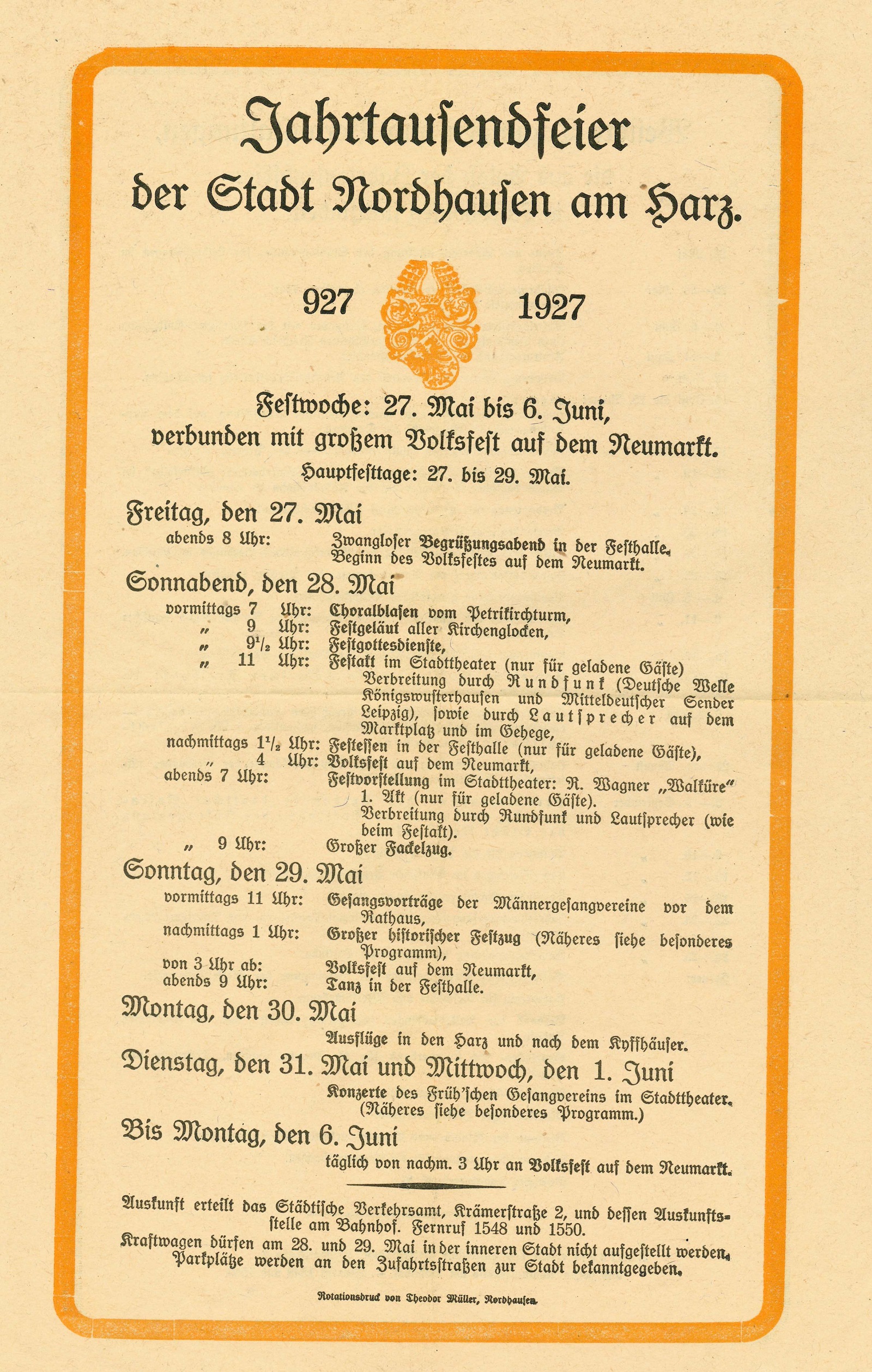 Programm zur "Jahrtausendfeier der Stadt Nordhausen am Harz" |