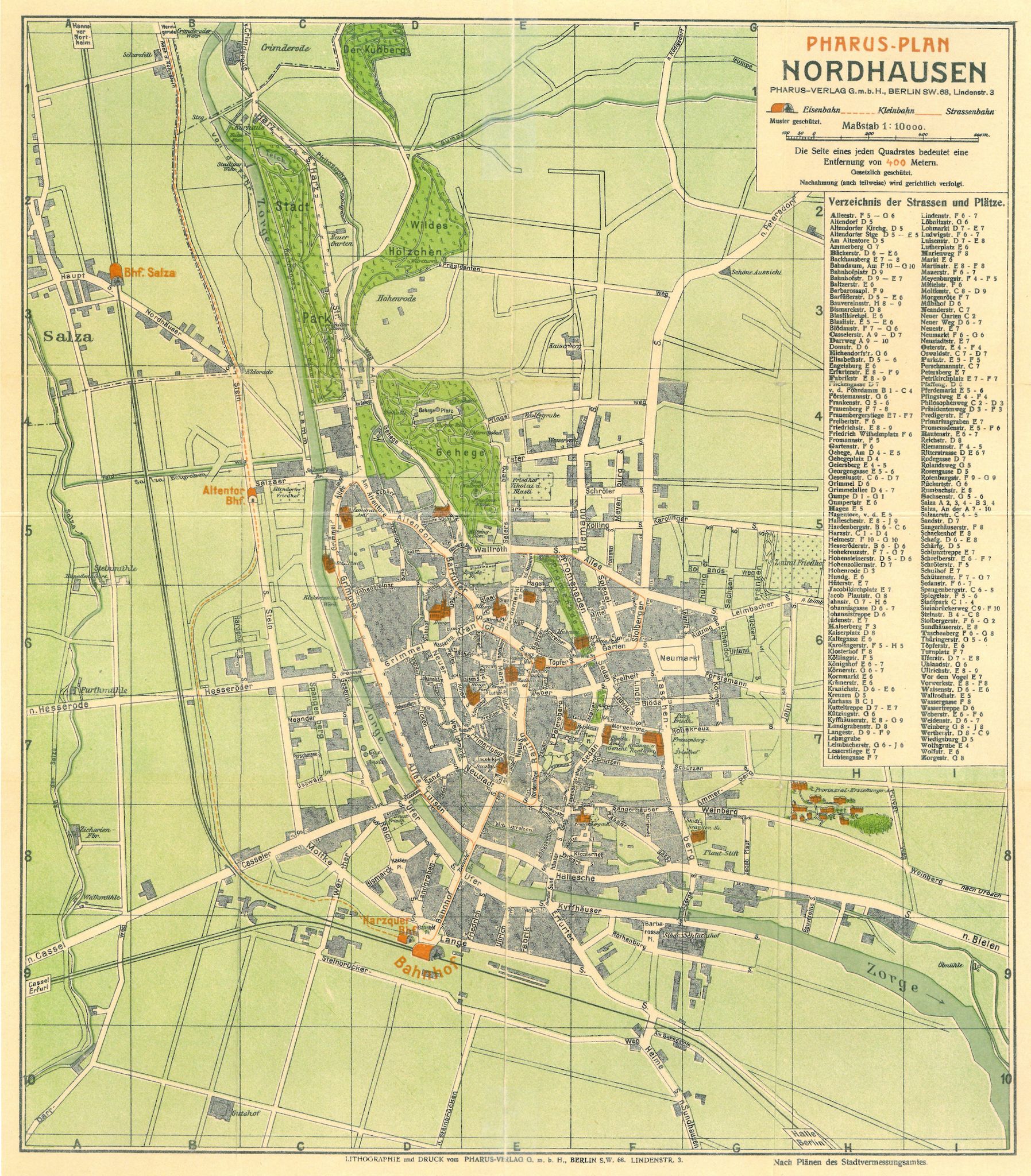 Stadtplan von Nordhausen (1910) nach den Plänen des Stadtvermessungsamtes |