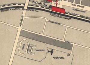 1917 entstand im Süden der Stadt eine Fliegerschule für die Kondor Flugzeugwerke; das Essener Unternehmen erhielt hierfür eine 1 km² große Fläche als Pachtland.[1] Es wurden neben Schul- und Wirtschaftsgebäuden auch Flugzeughallen errichtet. Im Zuge dieses Großprojektes entstand aus einem ehemaligen Feldweg der Darrweg, die Gebäude standen südlich und längs zur neuen Industriestraße. Nach dem Ersten Weltkrieg blieb das Gelände ungenutzt und verkam. Ab 1930 wurde das Areal vom Luftsportverein Nordhausen als Verkehrsflugplatz genutzt.