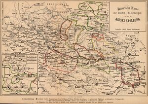 Historische Karte der Stamm-Besitzungen des Hauses Stolberg, entworfen von Karl Meyer, mit dem weiteren Titel „Die Herrschaft Frohndorf“ (1885)