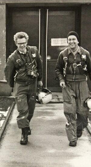 Jost-Dieter Rudloff im Februar 1961 auf der Flugzeugführer-Schule Fürstenfeldbruck vor dem Erstflug mit einem Strahljäger Lockheed T 33 mit Fluglehrer.