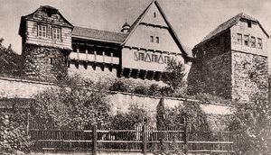 Im Sommer 1915 wurde dann auf dem Schulhof eine eigene Turnhalle errichtet. Der gewaltige Turnhallengiebel wurde dabei von den Architekten zwischen dem Marterturm und seinen westlichen Nachbarn platziert, wodurch der Gesamteindruck des spätmittelalterlichen Bildes noch verbessert wurde.